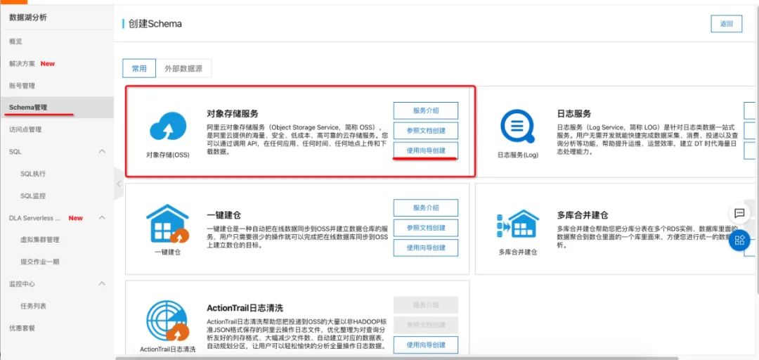 创建oss schema