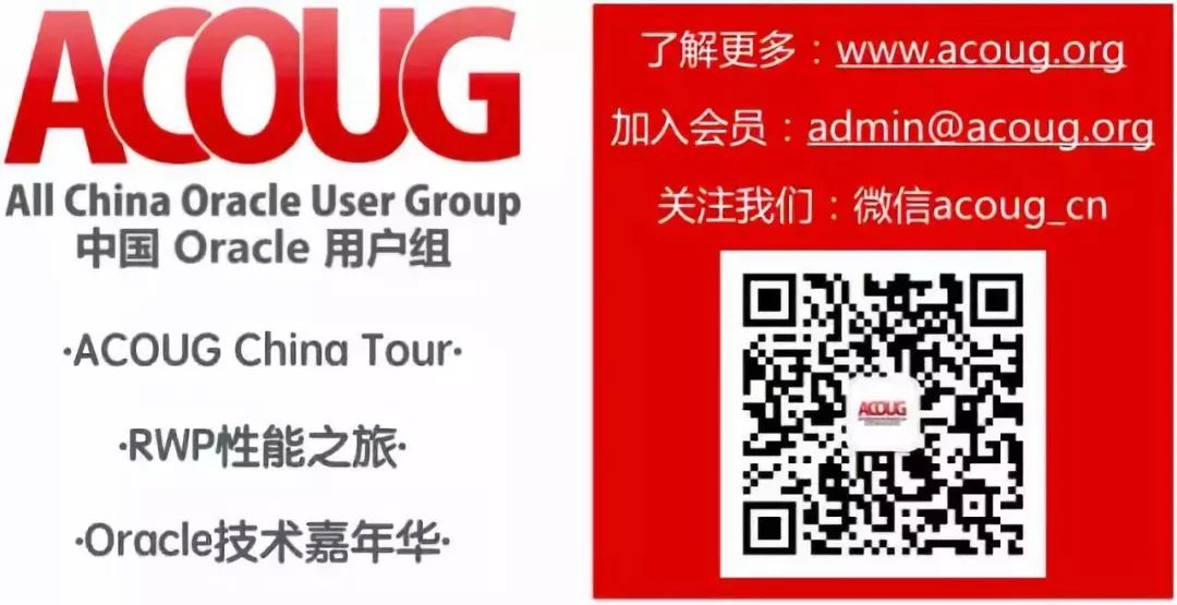 2019 ACOUG年会PPT https://www.modb.pro/topic/13478(复制至浏览器或点击文章底部“阅读原文”,即可查看)