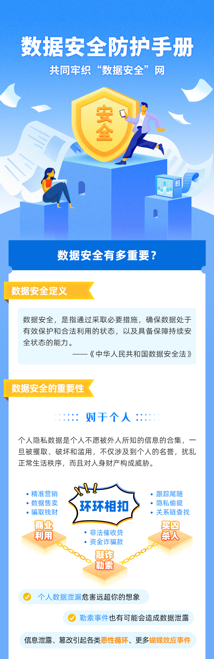 今年,《数据安全法》、《个人信息保护法》颁布,数据安全再次成为社会各界关注焦点。在如今的数字经济时代,数据安全问题,从小来讲涉及到个人隐私,从大来讲涉及到国家安全。那么,常见的数据安全风险有哪些?组织单位如何进行数据安全防护?美创科技《数据安全防护手册》,快来学习吧!