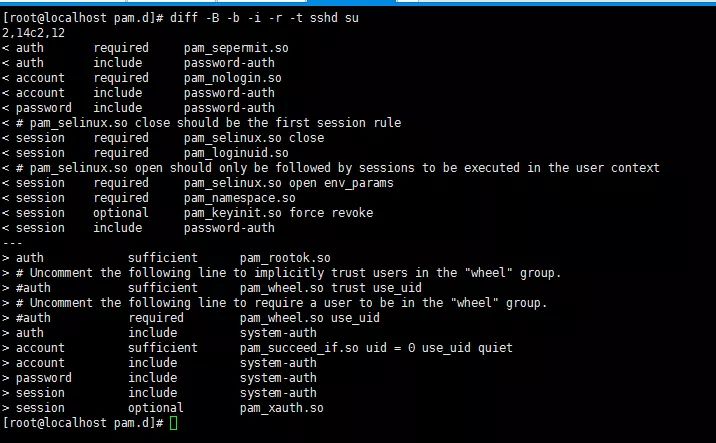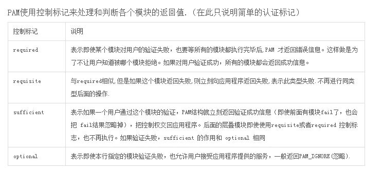 sshd的pam认证使用了required和include,su使用了sufficient,在此就可以看出二者的区别了。