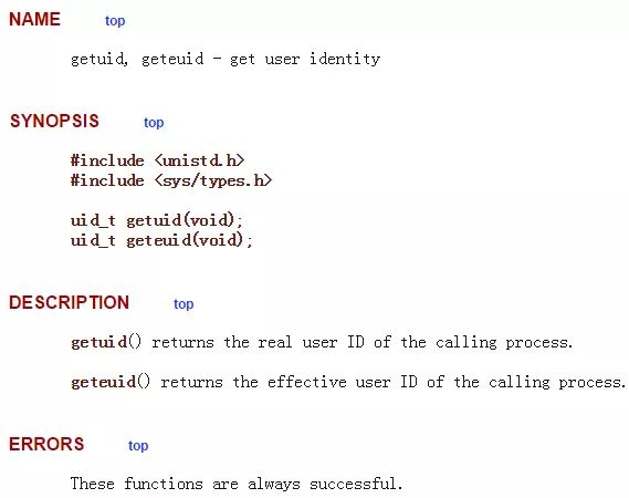 http://man7.org/linux/man-pages/man2/getuid.2.html