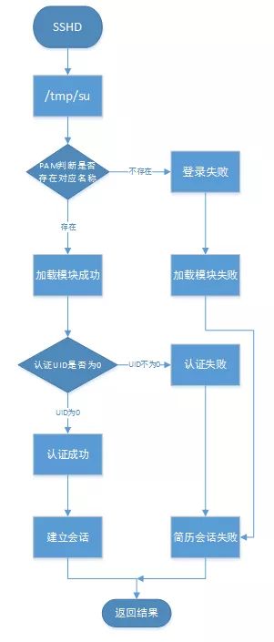 他的认证模块是认证你的UID是否为0,他会return pam的结果。
