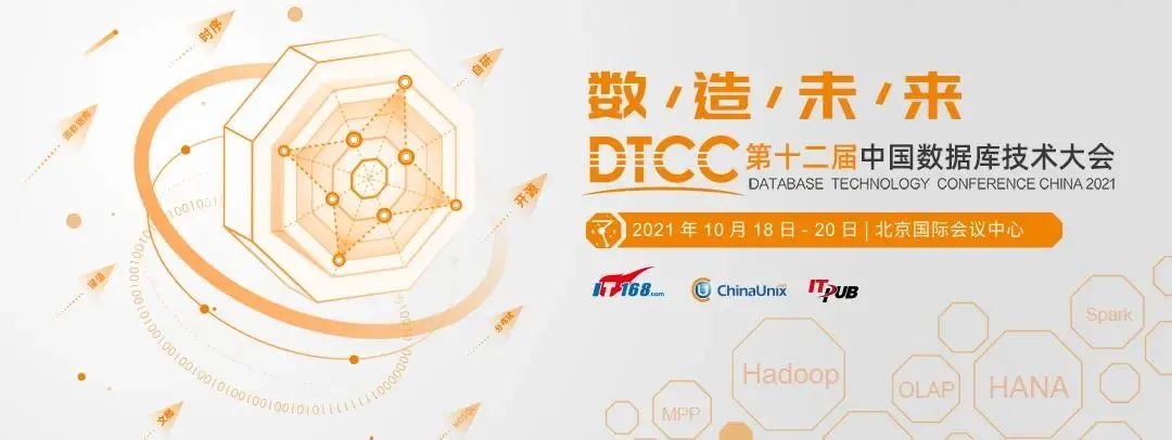 2021年10月18日~10月20日,由 IT168 旗下 ITPUB社区主办的第十二届中国数据库技术大会(DTCC2021),将在北京隆重举办。大会以“数造未来”为主题,设置2大主会场,20+技术专场,邀请了百余位行业专家,为广大数据领域从业人士提供一场年度盛会和交流平台。