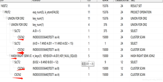 根据执行计划可知 从最后一个or a.id1 in (select id1 from test1 b where b.id2 = 8 and b.id3 = 12)而来。