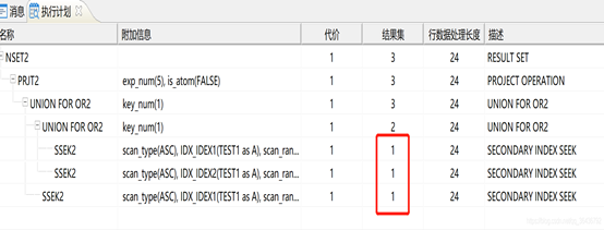 从上图可看成结果集数量分布是1、9、375 这些都是估算的。