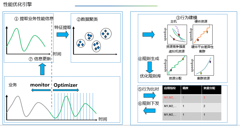 当一台物理主机上运行多台虚拟机的时候,虚拟机之间必然会有资源的竞争,包括CPU、内存、Cache、TLB、QPI等资源竞争。传统的虚拟化优化技术无法知道资源的供需关系。传统虚拟化优化技术无资源感知能力,如CPU级资源竞争,内存带宽竞争;无协同优化能力,如计算,存储与网络的协同优化;无业务感知能力,重要核心虚拟机依然会受到其他虚拟机的资源竞争。而深信服基于AI的性能优化引擎,拥有业务感知能力通过AI引擎识别当前业务场景的核心资源需求和业务场景的资源瓶颈。AI引擎基于业务的历史资源标签建立性能优化模型。自适应的性能优化架构能够根据业务的资源标签推荐最优的资源配置并根据业务的资源标签推荐最优的调度策略。
