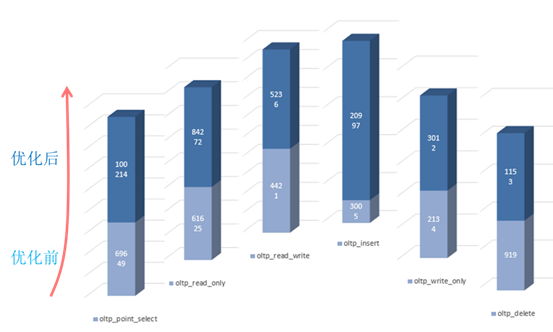 整个调优过程中利用了 A-Tune 强大的离线动态自动调优能力,采用敏感参数搜索算法筛选出不同业务场景下的重要参数,通过贝叶斯优化算法对筛选出的重要参数空间进行迭代搜索,不断优化参数值,直到算法收敛,获取到最优配置为止。相比工程师手动调优,不仅调优结果更优,同时还极大提升了调优效率。其中以 MySQL 的 oltp_insert 场景为例,利用 A-Tune 调优引擎的调优能力降低了虚拟机 CPU 的使用开销,优化了服务的处理性能,相比于基线,吞吐量提升高达 5 倍。