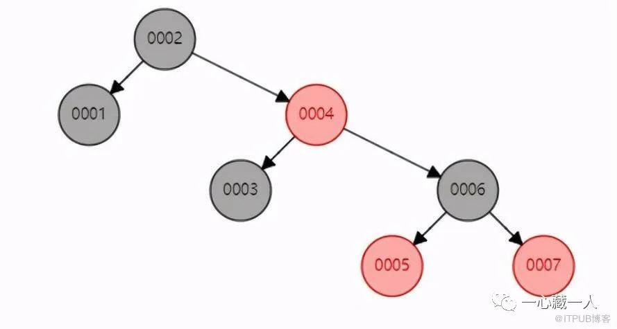 依次插入1、2、3、4、5、6、7看一下效果,可以看到,当有单边增长的趋势时红黑树会进行一个平衡(旋转)。这时,我们查询col1=6的数据时,查了3次,比二叉树又有了改进。