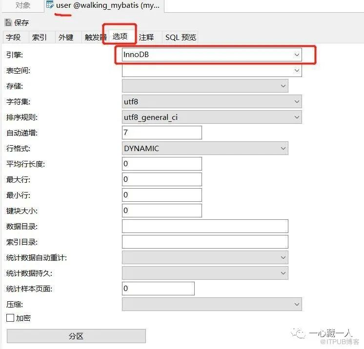 如果你用Navicat工具去建表,也许你最多就用了“字段”这一栏去增加字段,你可以点一下“选项”看一下,可以选择存储引擎。