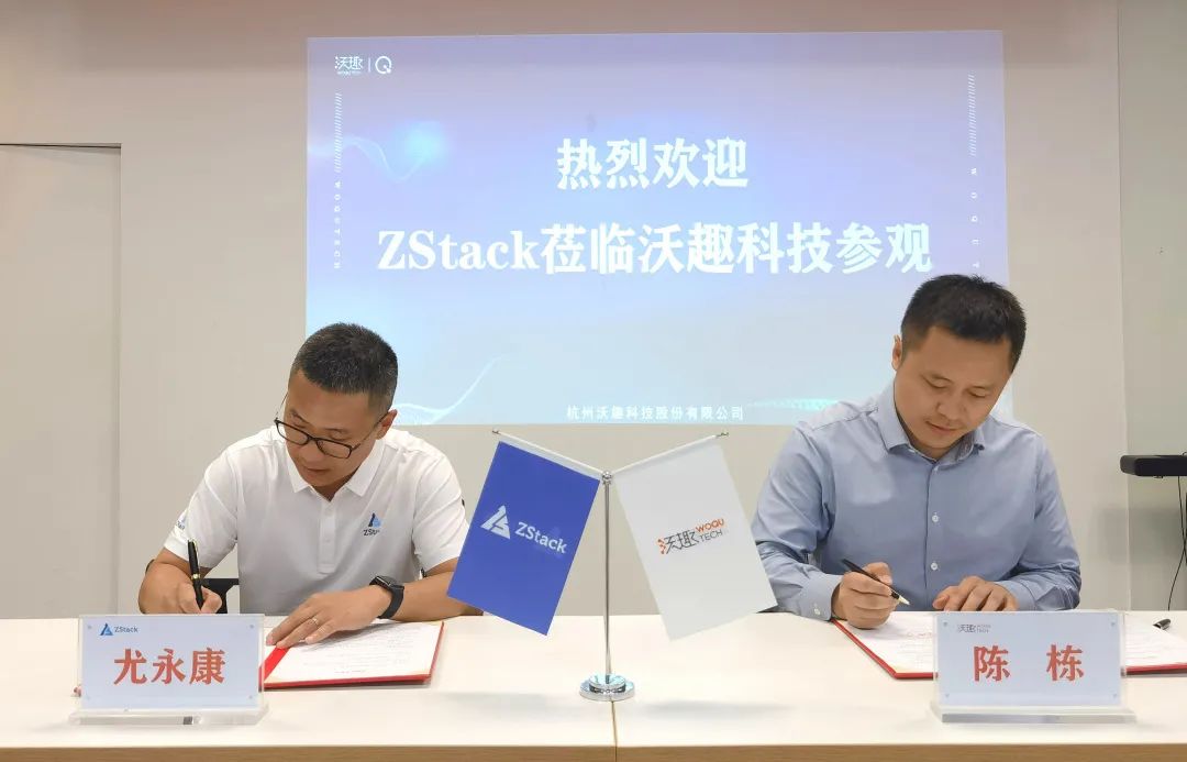沃趣科技CEO陈栋、ZStack COO尤永康代表签约