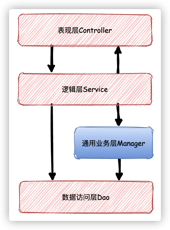 为了解决这个问题,我们参考《alibaba java开发手册》,在Service层之下再独立出一个通用业务处理层(Manager层)