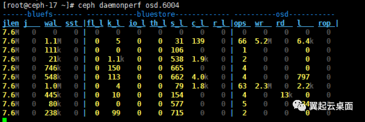 通过“ceph daemonperf osd.6004”查看实时统计,发现k_l、s_l和c_l很大。