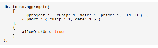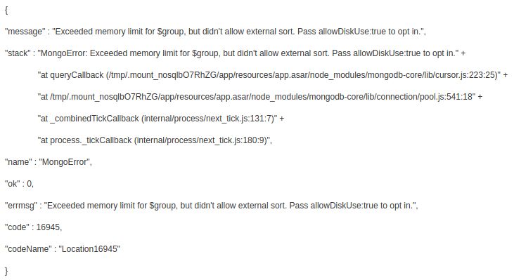 解决错误,使用使用 allowDiskUse 选项来进行分组聚合查询: