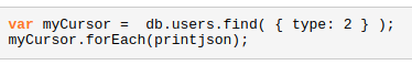 也可以使用游标的 forEach() 迭代(遍历)游标来访问文档: