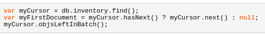 遍历结果集到达返回数据的末尾时, 如果有更多的数据, cursor.next()方法会执行getMore operation操作来得到下一批数据。可以通过objsLeftInBatch()方法来查看在当前数据还有多少数据没有遍历.