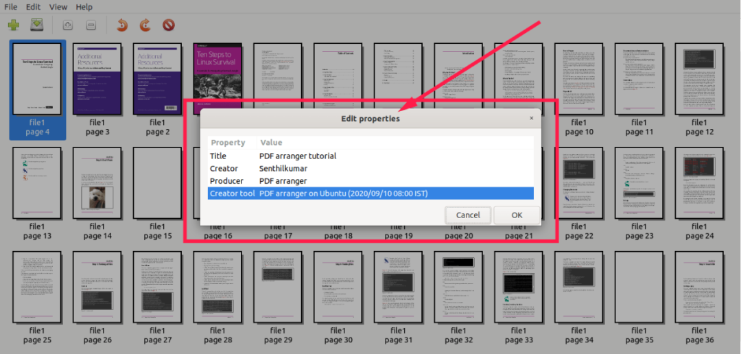 PDF文档的基本元数据可以通过PDF Arranger很容易地进行修改。例如,您可能想要添加一些细节,比如谁创建了这个PDF文档,什么时候创建的,使用了什么软件来创建这个文档等等。
