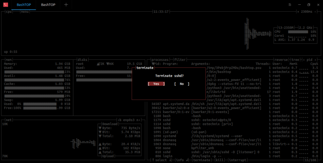 开发者声称Bpytop比Bashtop更快,Bpytop有更多的特性,建议我们使用Bpytop而不是Bashtop。这是你个人的选择。你可以两种都试试,挑一个适合你的。