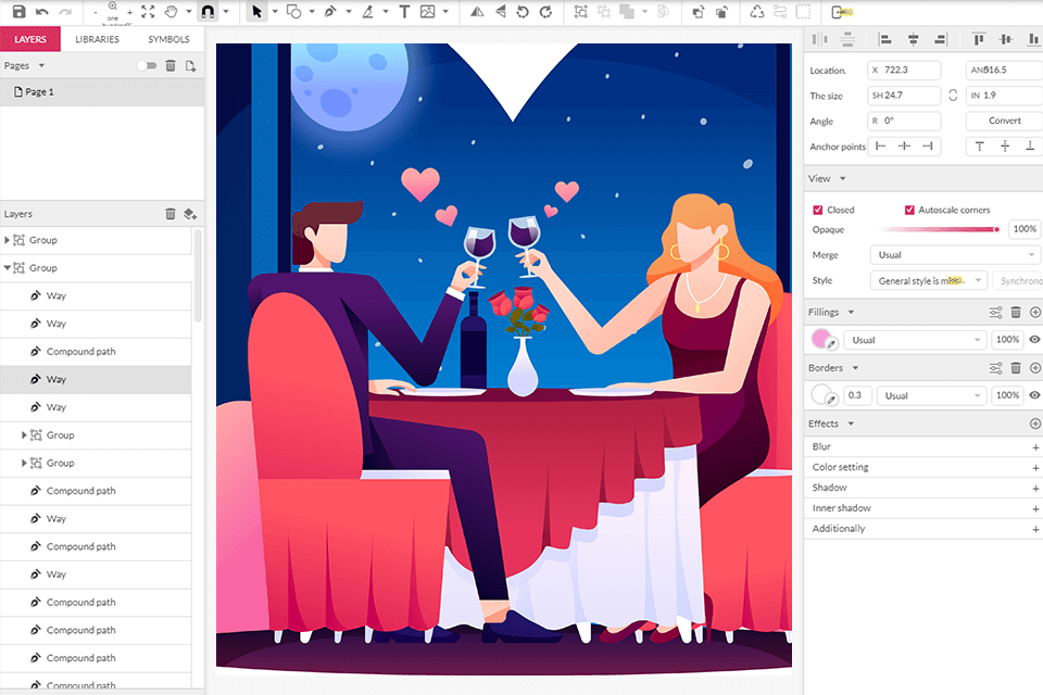 Vectr是另一个免费的Linux图形软件,可以用于创建和更改矢量图形。您可以在浏览器中直接使用它,也可以将它作为桌面应用程序使用。使用这个工具,您可以创建简单的图像(徽标、徽标、图标)以及复杂的矢量插图。另一个值得注意的优点是Vectr带有协作工作特性。你只需要给你的同事发送一个你项目的链接,他们就可以关注并加入讨论。这在在线和桌面版本中都是可以进行的。App中所有的功能都简单直观,无需专业培训即可掌握。