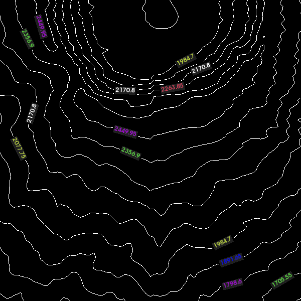 。标签化的等高图(vtkLabeledContourMapper 和[vtkLabeledContourPolyDataItem)使用户可以在等高图中用对应的数值来对数据进行标记,如下图所示。