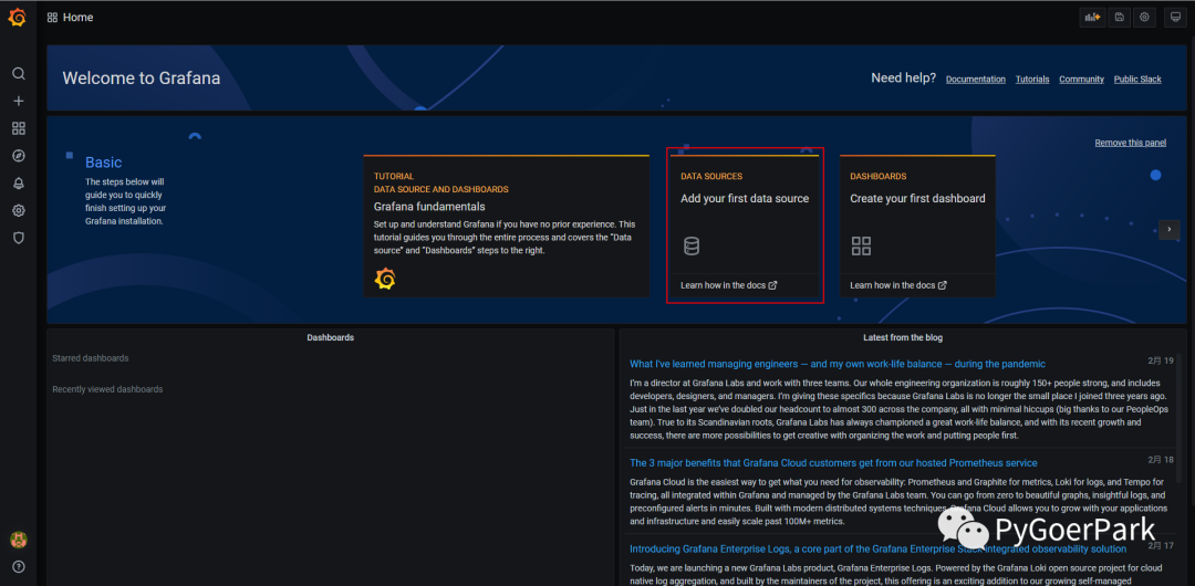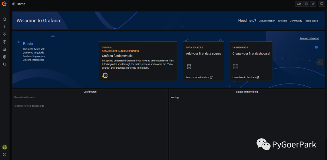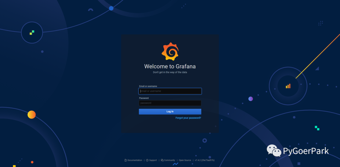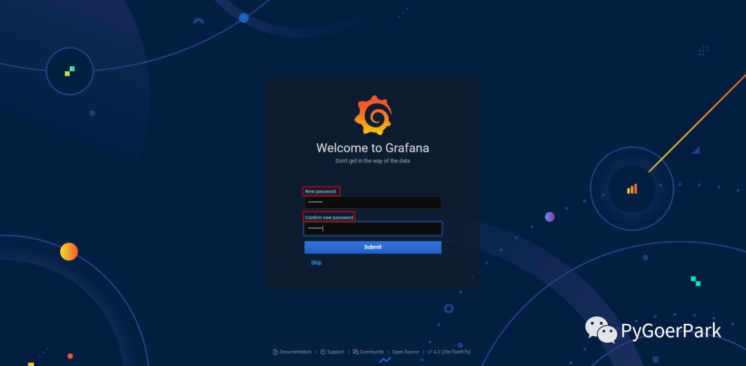 浏览器访问IP:3000端口,即可打开grafana页面,默认用户名密码都是admin,初次登录会要求修改默认的登录密码: