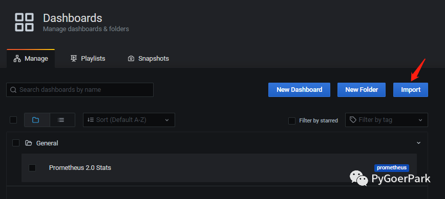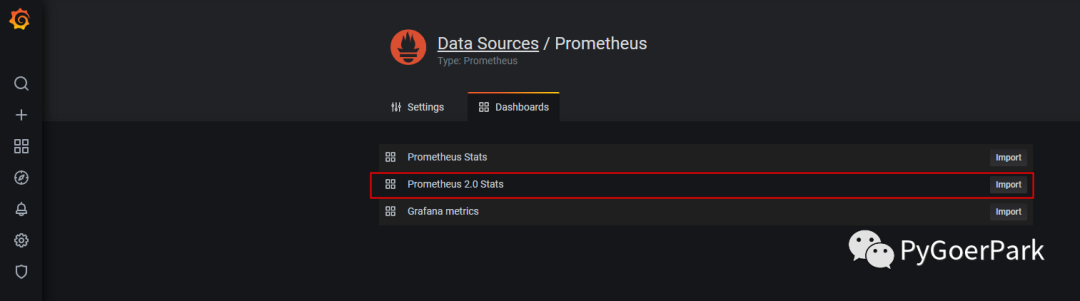Dashboards页面选择“Prometheus 2.0 Stats”进行Import: