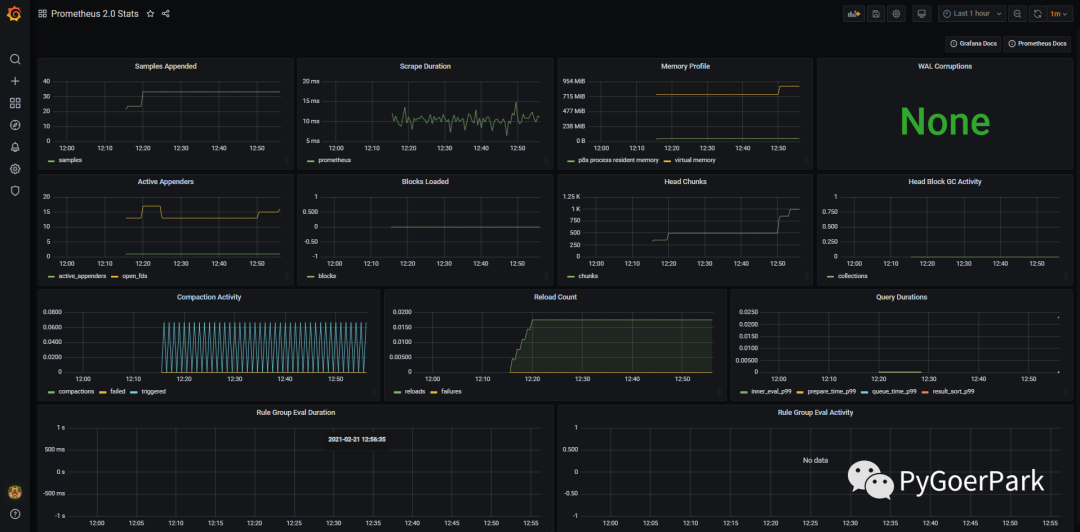 切换到我们刚才添加的“Prometheus 2.0 Stats”即可看到整个监控页面: