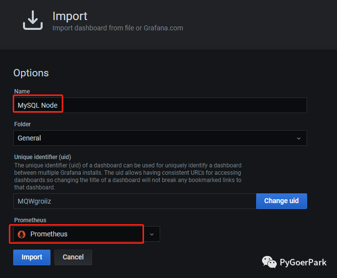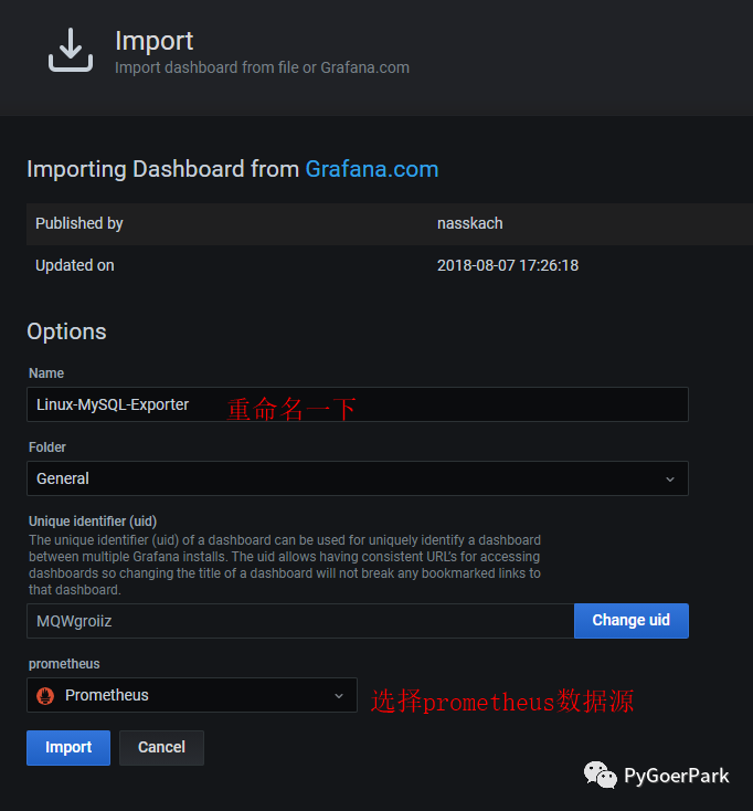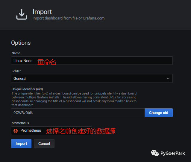 修改名字,选择我们前文创建好的数据源,点击导入即可: