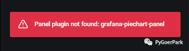 下面这个提示是grafana缺少相关显示需要用到的插件piechart,grafana的默认插件目录是/var/lib/grafana/plugins,可以将下载好的插件解压到这个目录,重启grafana即可