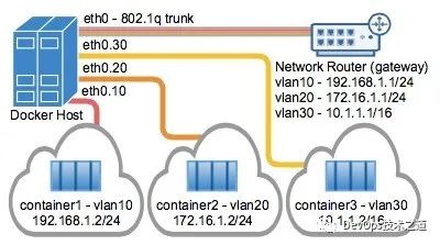在主机上同时运行多个虚拟网络的要求是非常常见的。Linux网络长期以来一直支持VLAN标记,也称为标准802.1q,用于维护网络之间的数据路由隔离。连接到Docker主机的以太网链路可以配置为支持802.1q VLAN ID,方法是创建Linux子接口,每个子接口专用于唯一的VLAN ID。