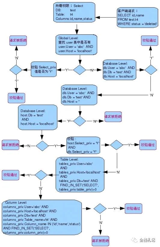 最后附一张《MySQL性能调优与架构设计》中的权限控制流程图。