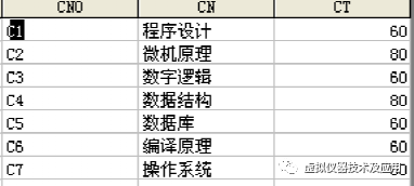 同样,下面的课程表C,包含CNO、CN、CT三个属性,分别用于描述课程的课程号、课程名、学时三个属性。其中每门课程的CNO属性的取值都是独一无二的,它能唯一定位到(标识)一门具体的课程,因此属性CNO为课程表C的主键。