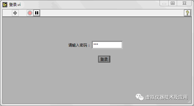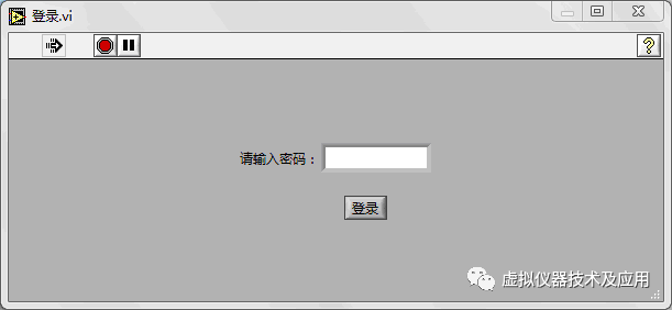 (2)程序运行时,将自动调用“登录.vi”,打开登录窗体,如下图所示: