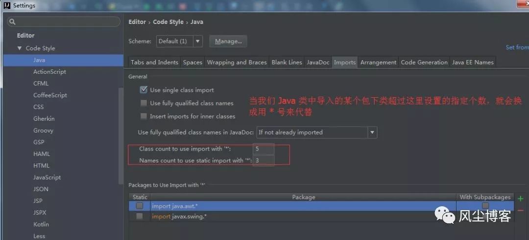 Editor –> Code Style -> Java ->Imports