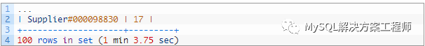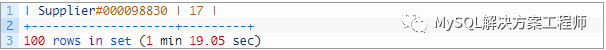 创建表之后,运行查询号21。它发出100条记录,但是我们更关心它的执行时间:
