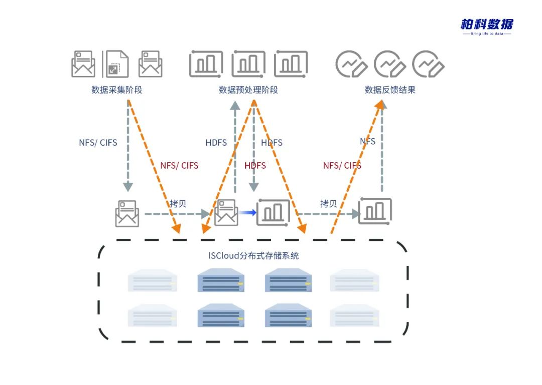在多样化的HPC场景下,日均产生的三维数据可达几百TB甚至PB级,因此,对存储性能有着更高的要求。在海量数据的处理过程中,一次数据处理需要经过文件、对象、大数据等多种格式的数据处理,这无疑是对传统数据存储方式发起了巨大的重构挑战。就“自动驾驶”、“石油勘探”场景为例,数据采集的原始数据是NFS格式,需要先转换为HDFS格式,才能利用大数据系统对数据进行预处理,最终将数据转换为NFS格式导入进人工智能训练集群及演练仿真集群 ,对数据进行深度挖掘,进一步调整自动驾驶策略。