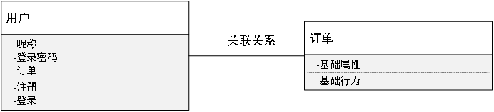 类的关联关系是指两个类之间有相关性,如果一个类的属性是另外一个类,就说这两个类之间有关联关系。例如在电子图书阅读系统中,假如用户类的一个属性是订单类,则可以说用户类和订单类有关联关系。图2-15是关联关系的类图模型。