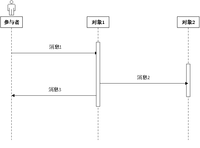 对象生命线上的长条矩形框表示对象处于激活状态,当一条消息传递给对象的时候,对象响应该消息并触发对象的某个行为,这时该对象就处于激活状态。当对象没有被激活时,对象处于休眠状态,等待接收消息被激活。