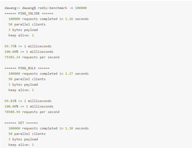 在配置好 Redis 后,我们可以通过自带的性能测试来查看 Redis 在这台服务器上的表现,据此决定是否应该进行配置和服务调整,例如: