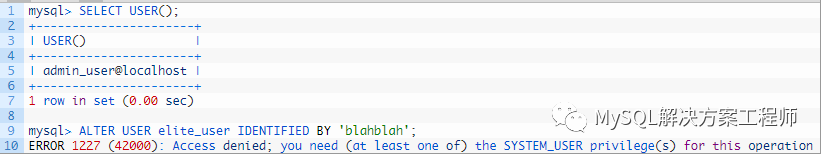 您可能已经注意到,SYSTEM_USER权限与system_user()或OS用户无关。我们将该权限命名为“SYSTEM_USER”,因为它恰当地描述了意图。
