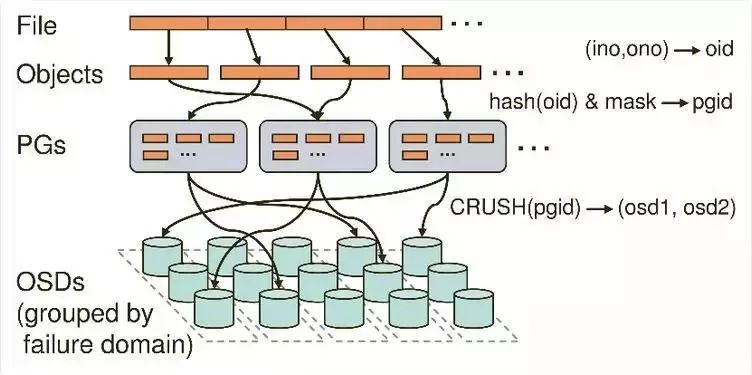 Object -> PG -> OSD。