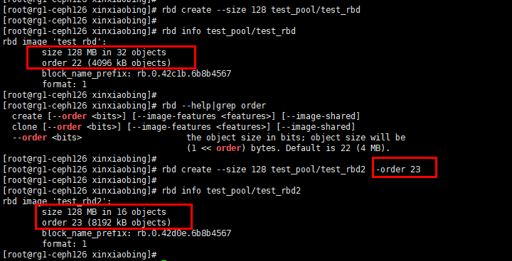 1)File ——以rbd块存储为例,此处的file即为我创建了一个rbd块,假设我创建了128M的块,在创建块时候可以设定切分成多大的object存在存储设备上,默认是4M,如下图: