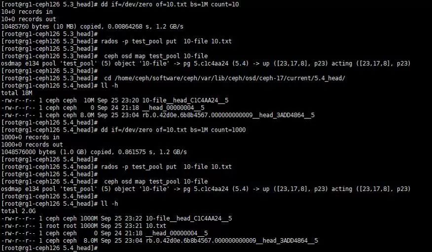 从rados层直接put一个对象到集群中:(原对象多大存入集群就多大)