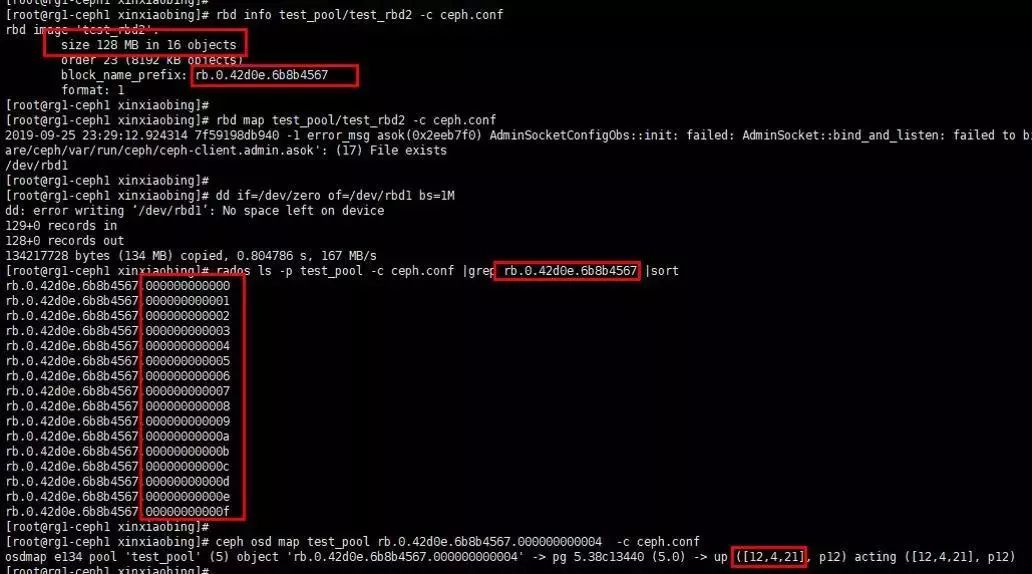 File -> object:从rados层直接存储,不对对象做任何处理,只以对象名为分区将对象存入集群,如果对象名重复则覆盖;从应用层,假设从rbd接口应用层存数据,可以在应用层设定统一切分对象大小,对象名为 block_name_prefix + ID ,存入后端存储设备。