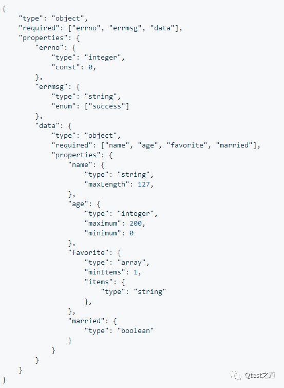 上面两个都是有效的JSON数据,那么当我们需要对接口返回进行校验时,我们该怎么做呢?一般的探活监控可以通过http码或者错误码来进行识别结果是否正确,但如果我们需要精准校验json数据的格式呢?难道我们要写一套复杂的通用逻辑来处理么?不,这个时候我们用JSON Schema就可以啦(众人:少废话,show me the code)。