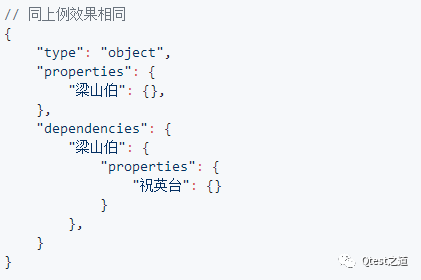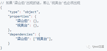 7.dependencies: object, 如果出现了某个键则其依赖的键也必须出现