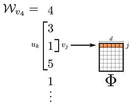 通过对一系列输入样本的训练,将一个顶点vj映射为一个d维向量Φj