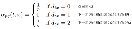 node2vec通过两个参数来进行有偏的随机游走:pqp控制访问已经访问过的节点概率,q控制访问新节点概率