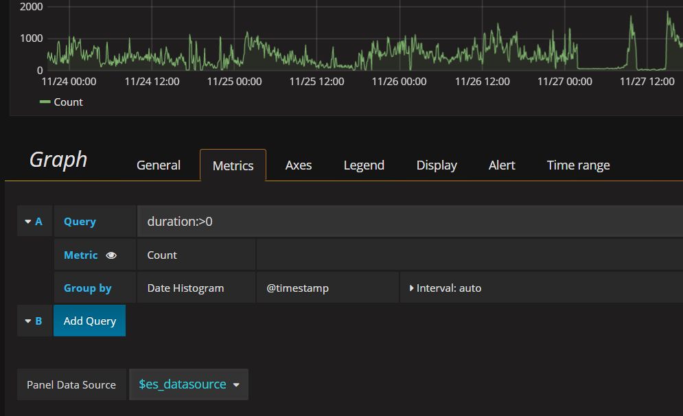 恰巧在研究时序数据库的过程中发现了一个用于时序数据可视化展示的工具,Grafana,ElasticSearch存储的日志数据也是一种类型的时序数据,用Grafana来展示再合适不过了。