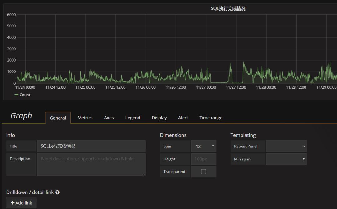 点击“ADD ROW”即可创建一行面板,其上可创建多个图表