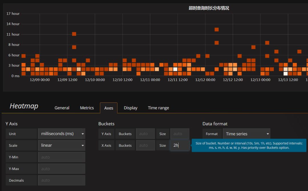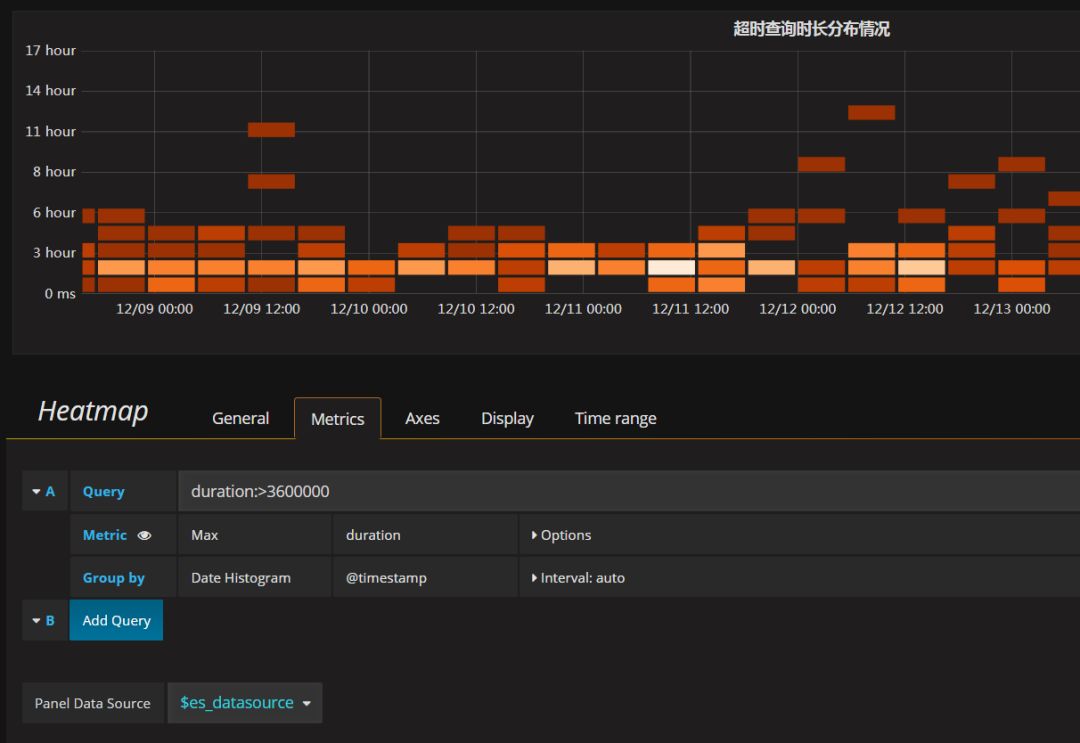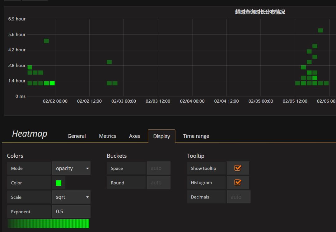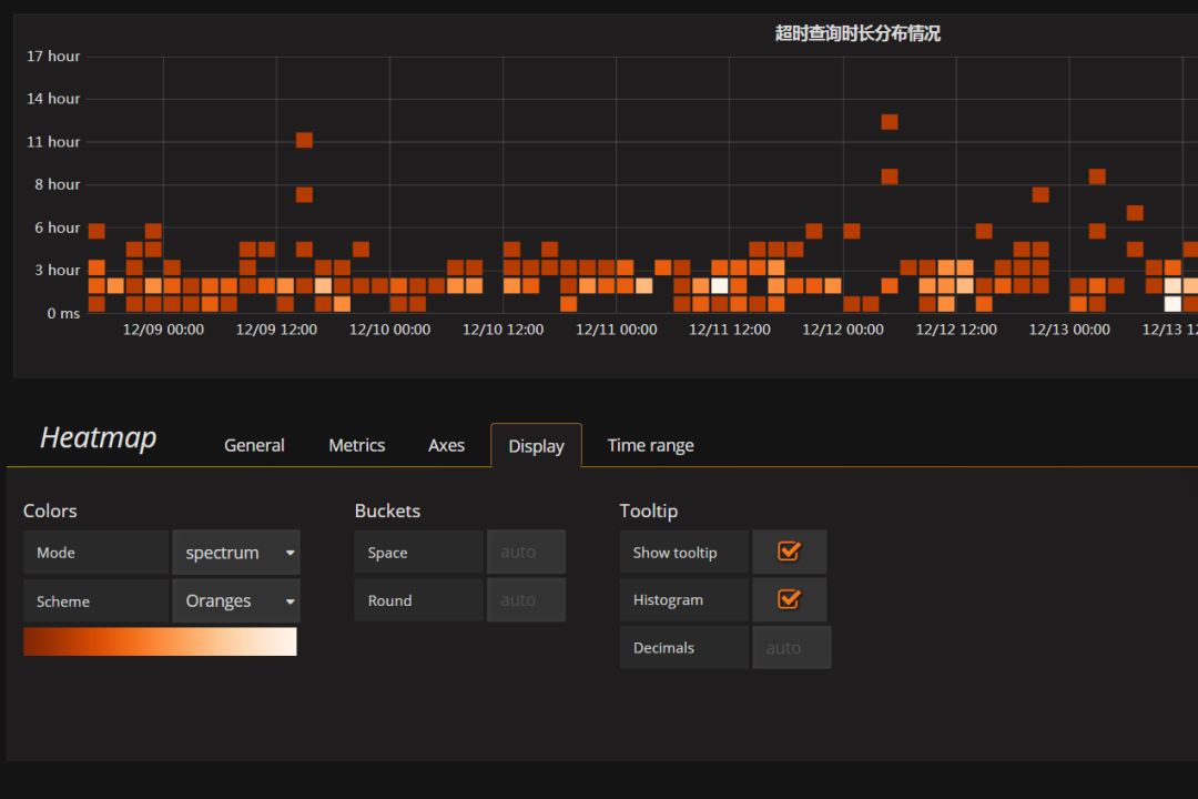 这个例子中将创建一个热力图展示超时查询在执行时长上的分布情况